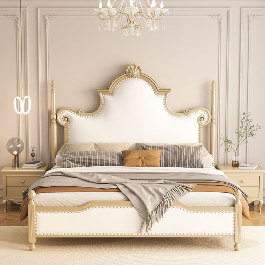 Transform your bedroom into a haven of elegance with our luxury classic bedroom furniture set, featuring a beautifully crafted wooden bed with upholstered headboard, matching side tables, and ornate gold detailing. Designed with timeless charm and superior craftsmanship, this collection blends traditional artistry with modern comfort, making it the perfect choice for sophisticated interiors.
